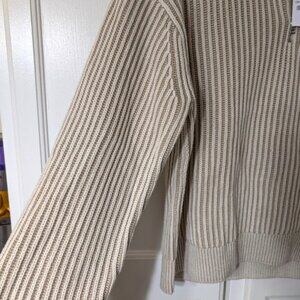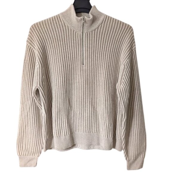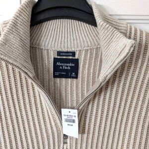 Abercrombie & Fitch Oversized Half Zip Stripe Stitch Knit Jumper In Cream