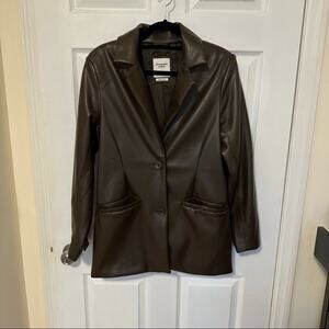 Abercrombie & Fitch Oversized Medium Chocolate Brown Faux Leather Blazer Jacket.