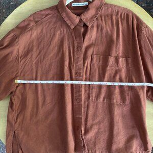 Abercrombie and Fitch Oversized Pocket Front Linen Button Down Short Sleeve Rust