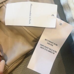 New with Tags Abercrombie & Fitch The 90s Straight Ultra High Rise Faux Leather Pants in Tan Nude Women’s size 23/000