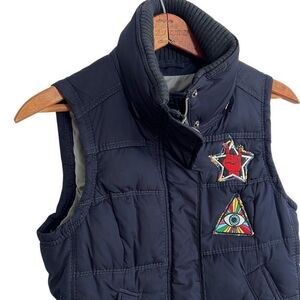 Abercrombie & Fitch Patch Logo Quilted Mock Neck Full Zip Puffer Vest Navy Small