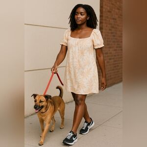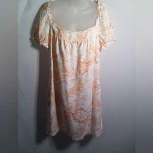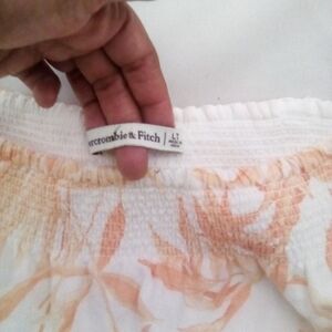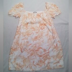 Abercrombie & Fitch Peach Cream Tree Floral Smocked Front Pocket Dress Size LT