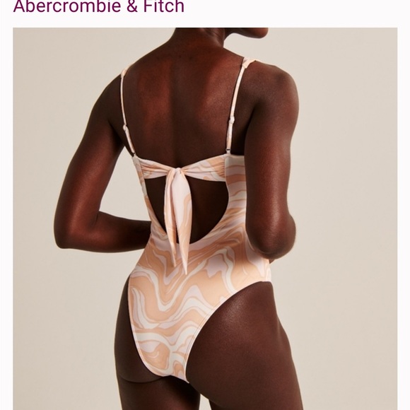 Abercrombie & Fitch Peach Swirl Pleated Strap Underwire One Piece Swimsuit