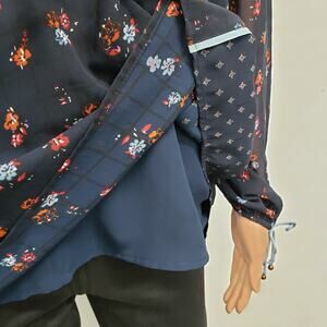 Abercrombie & Fitch Peasant Floral Top Sz S Navy Blue Long Sleeve Lace up Boho