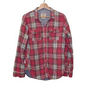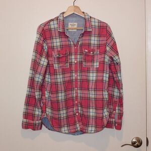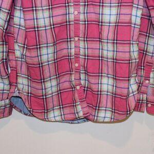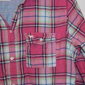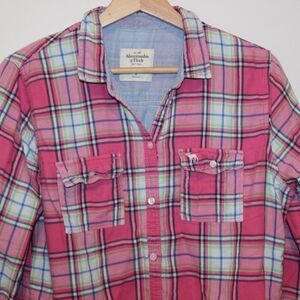 Abercrombie & Fitch Pink White Plaid Cotton Blend Button Down Shirt Women Size M