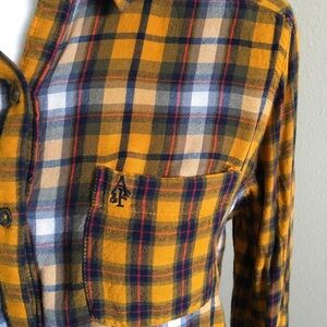 Abercrombie & Fitch plaid button down. Lightweight, soft cotton fabric in shades of golden yellow with red, blue and white accents. Worn only one time, excellent condition. Really cute shirt perfect for warm or cold weather.