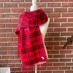 Abercrombie & Fitch Plaid Red Black Blue Fringed Scarf 78”x15”