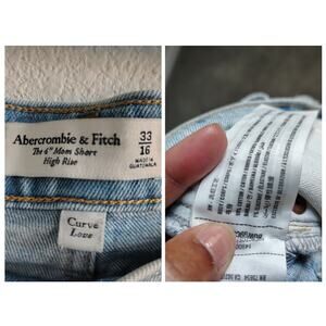 Abercrombie & Fitch Plus Size 16/33 Mom Shorts High Rise 4" Light Wash Denim Cutoff Booty, Daisy Dukes Fraying Cotton, Blue jeans