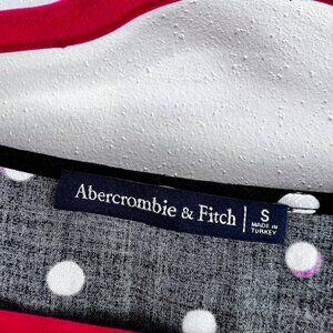 Abercrombie & Fitch polka dot crop top blouse in black with white dots. Smocked bottom and at cuffs, v-neck, pullover, good condition.