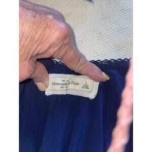 Playful meets polished in this Abercrombie swing dress featuring classic navy blue and crisp white polka dots. The sleeveless silhouette and soft swing skirt give it a twirl-worthy finish, while the fully lined interior includes a cotton slip with lace trim—because Abercrombie always knew how to sneak a little drama under the surface.