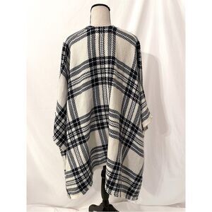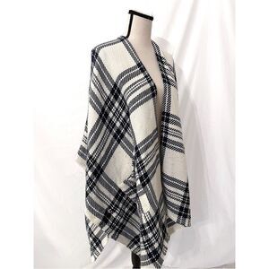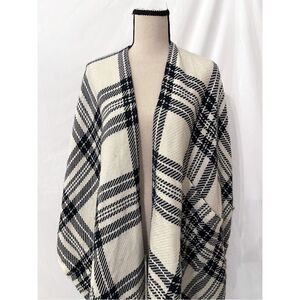 Abercrombie & Fitch Navy Cream Plaid Knit Poncho Wrap - One Size