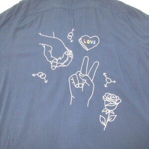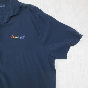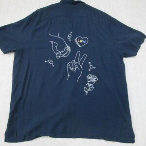 Abercrombie & Fitch Pride Shirt Mens 2XL Navy Embroidered Collared Button Down