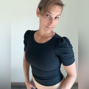 Abercrombie & Fitch Puff Sleeve Crop Top Smocked Open Back