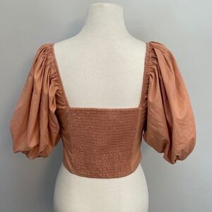 Abercrombie & Fitch Puff Sleeve Crop Top Square Neck Blouse Ring Detail