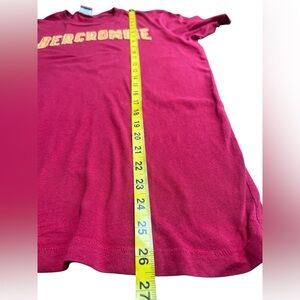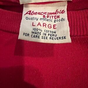 Vintage Abercrombie & Fitch men’s short sleeve muscle fit T-shirt in red with bold yellow varsity-style embroidered graphic across the chest. Classic Y2K style, made of 100% cotton. This rare throwback is perfect for lovers of early 2000s Abercrombie, preppy retro streetwear, or nostalgic collegiate looks.