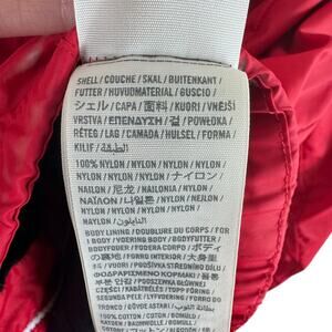 Excellent preowned condition. Abercrombie & Fitch Red Hooded Lined Full Zip Cropped Lightweight Jacket. Open pockets on lower front. Shell is 100& nylon/lining is 100% cotton material. Approx. measurements: Shoulder to hem 21", pit to pit 20", sleeve from neck to sleeve hem 29". Size L.