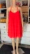 Chic red mini dress. Halter neckline. Flowy and stylish.
