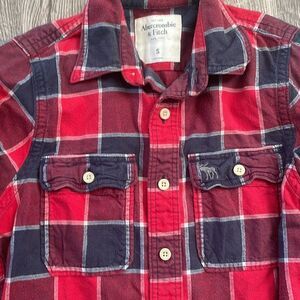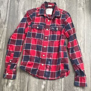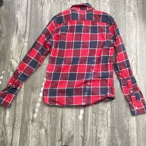 Abercrombie & Fitch Red Muscle Fit Plaid Flannel Shirt