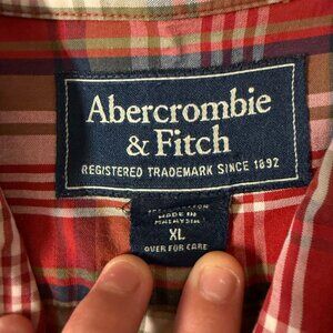 This Abercrombie & Fitch shirt features a classic red plaid design. Made for men, its long sleeves and button-up style offer both comfort and style.