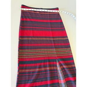 Abercrombie & Fitch Women's Red Striped Stretchy Bodycon Midi Skirt with Slit L Holiday Ladcore Rugby Xmas