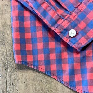 Abercrombie & Fitch Red and Blue Casual Button Down Shirt