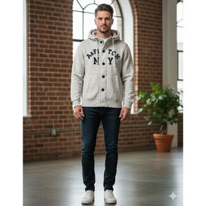 Abercrombie & Fitch Retro Y2k Muscle fit Sherpa Lined heavyweight Sweatshirt Hoodie oatmeal/heather gray ,Size- XL