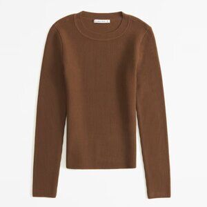 NWT Abercrombie & Fitch women's long sleeve Ottoman crew neck sweater top shirt, Brown, size XS. Highly rated.