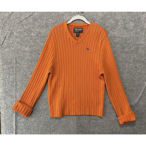 Abercrombie Fitch Ribbed Sweater Mens Sz L Orange V Neck Logo