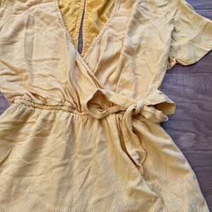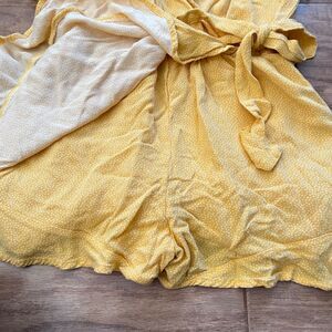 Abercrombie & Fitch Romper Wrap Front Tie Waist in Yellow/White Polka Dot. Women's Size XST Tall. 100% viscose. In good condition.