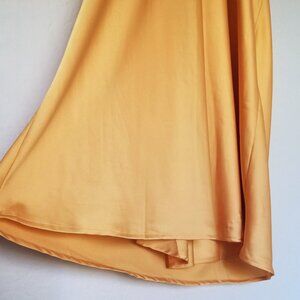 Abercrombie & Fitch Ruched Satin Slip Midi Dress XLP Marigold Dark Yellow $120