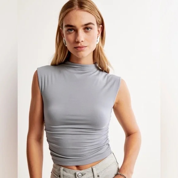 Chic modal top with ruched sides and mock neck top. Drapes beautifully on the body and works great under a blazer!