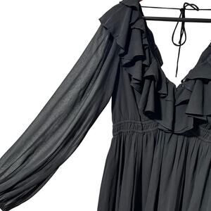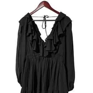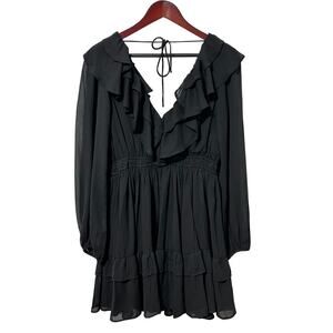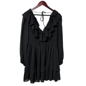 Abercrombie & Fitch Ruffle Chiffon Mini Dress Size M Black Deep V Neck NEW
