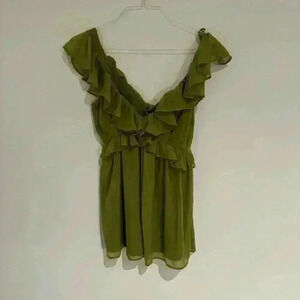 Abercrombie & Fitch Ruffle Neckline Green Dress Size Medium Like New