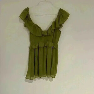 Abercrombie & Fitch Ruffle Neckline Green Dress Size Medium Like New