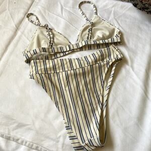 Abercrombie & Fitch S white Striped triangle top high leg bottom swim