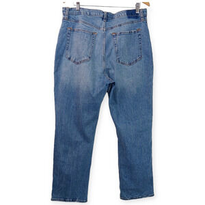 Our ultra high rise ankle straight jeans with built-in stretch for superior comfort. This jean features our highest rise that sits at your natural waist, is fitted at the top of body and relaxes at the knee for a straight-leg look. With refined details and a vintage feel from top to bottom, this style is cropped to show a little ankle—and your favorite shoes. Features a medium wash and slightly distressed hem.