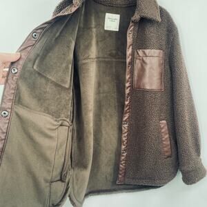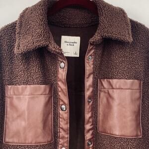 Abercrombie & Fitch Sherpa Jacket Elevated Trim Button Front Brown