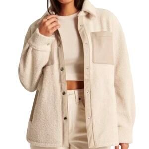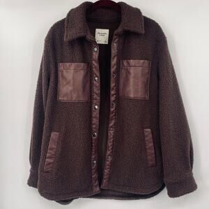 Abercrombie & Fitch Sherpa Jacket Elevated Trim Snap Front Fleece Brown Small