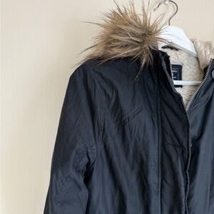 Abercrombie & Fitch Sherpa Lined Long Line Anorak Coat Faux Fur Trim Black Small
