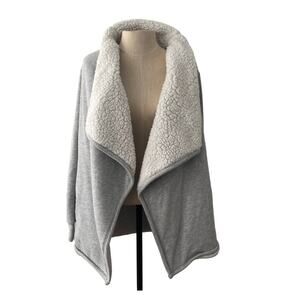 Abercrombie & Fitch Sherpa Open Front Cardigan Sweatshirt Sweater in Grey
