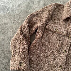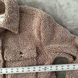 Abercrombie & Fitch Sherpa Teddy Shirt Jacket Shacket Women's SMALL Tan