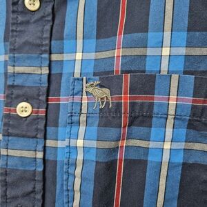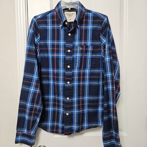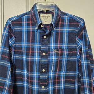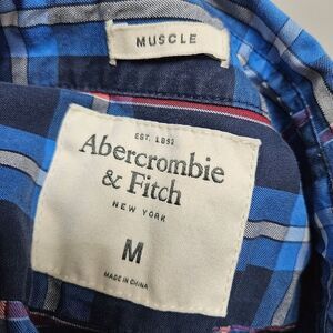 Abercrombie & Fitch Shirt Mens M Plaid Blue Red White Muscle Button Down Pockets