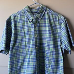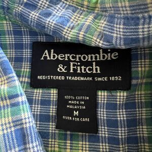 Abercrombie & Fitch Shirt Mens Medium Blue Green Plaid Button Down Short Sleeve