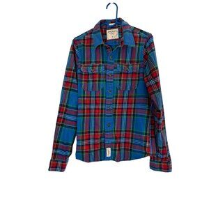 Abercrombie Fitch Shirt Mens XL Blue Red Plaid Muscle Fit Flannel Heavy Y2K Gorp
