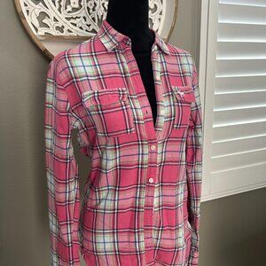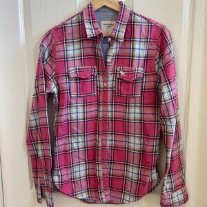 Abercrombie & Fitch Shirt Pink Plaid Flannel Button Up Y2k SZSX Winter