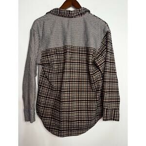 In excellent condition, this women's size small shirt features a timeless brown multi-plaid pattern.