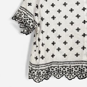 Comfy short-sleeve shirt in our soft linen-blend fabric, featuring embroidered details throughout, classic collar, button-up front and on-trend scallop hem.