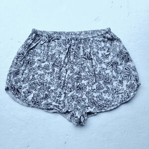 Abercrombie & Fitch Shorts Floral Black Ivory Lounge Drawstring Elastic Waist M