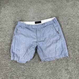 Abercrombie & Fitch Shorts Mens 34 Blue Linen Blend Chambray Chino Flat Front