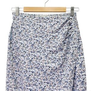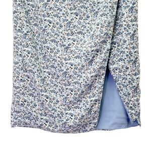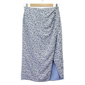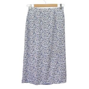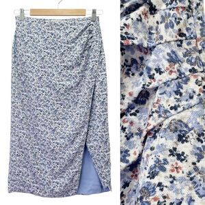 Abercrombie & Fitch Side Slit Midi Skirt Blue Floral Linen Blend Size Small
